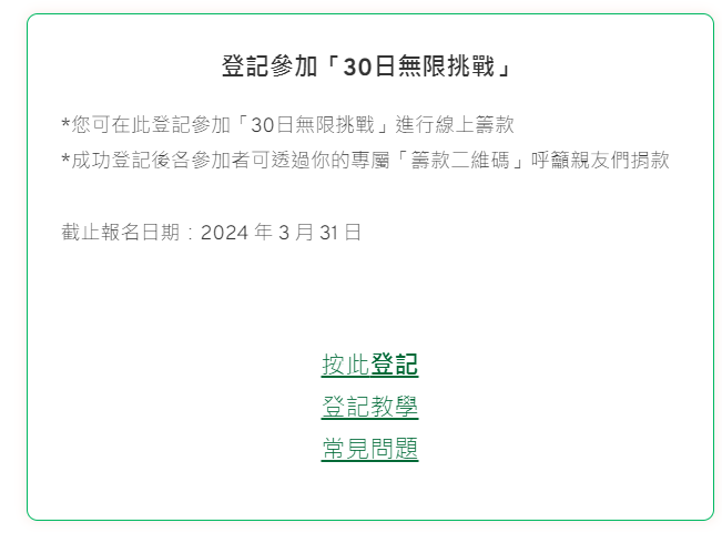 往網站,在主頁選擇「30日無限挑戰」中的「按此登記」。